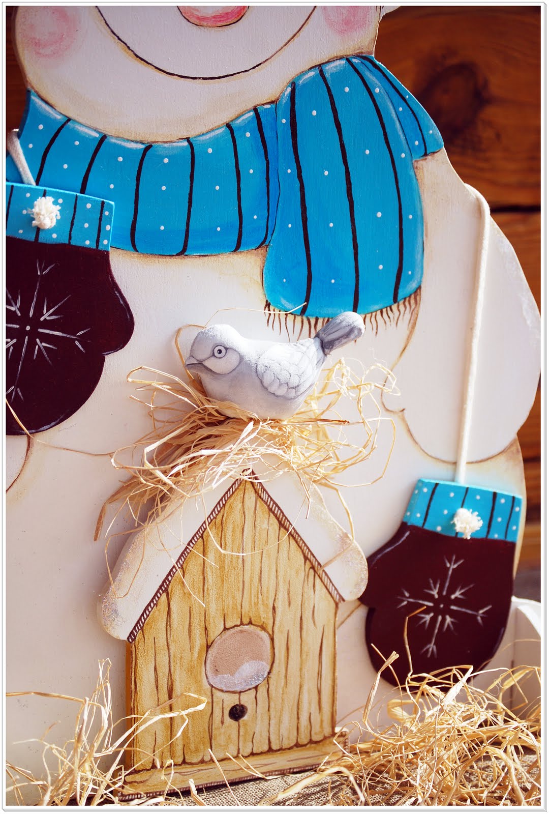 Bałwanek w całości.Trudno mi było obfocić,słońce tak ostre,że już nie wiedziałam jak ustawić dekoracje.Jest tu też ciut brokatu w niektórych miejscach,ale nie widać tego na fotkach.